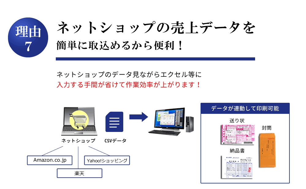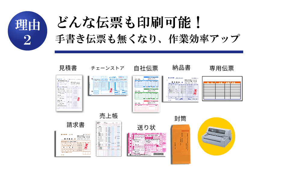 見積書を作成すると請求書に同じ内容が 引き継がれ、都度入力をする必要もなく 作業効率も上がりました。また、売掛伝票や封筒印刷なども活用しています。