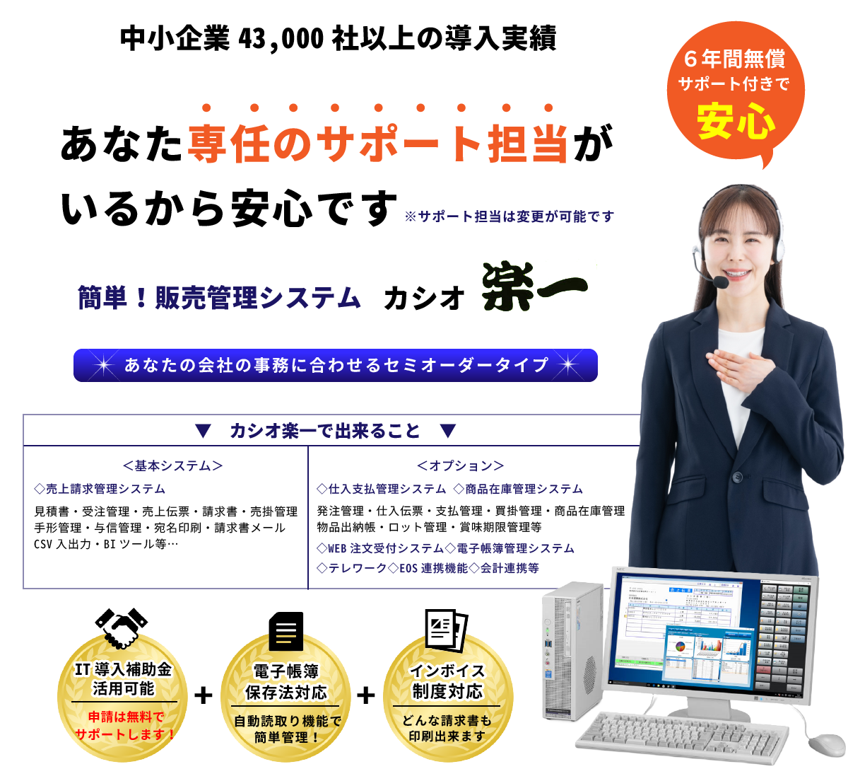 営業さんも、社内のシステム担当さんも電話すればすぐに対応してくれるのでとても助かります。電話で解決できない時は、遠隔でリモートサポートを無料でやってくれるので安心です。