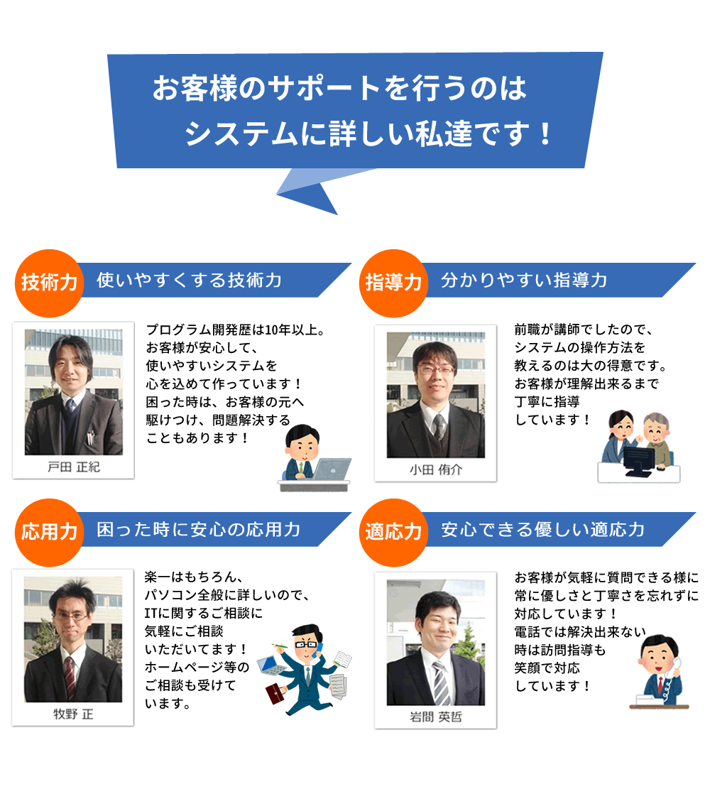 大事なのです。また、操作指導もお客様のペースに合せて