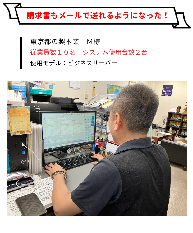 事務の効率化に成功したので、本来の仕事に費やす時間が増えて、とても助かっています。事務作業に掛かっていた時間も大幅に削減しました。