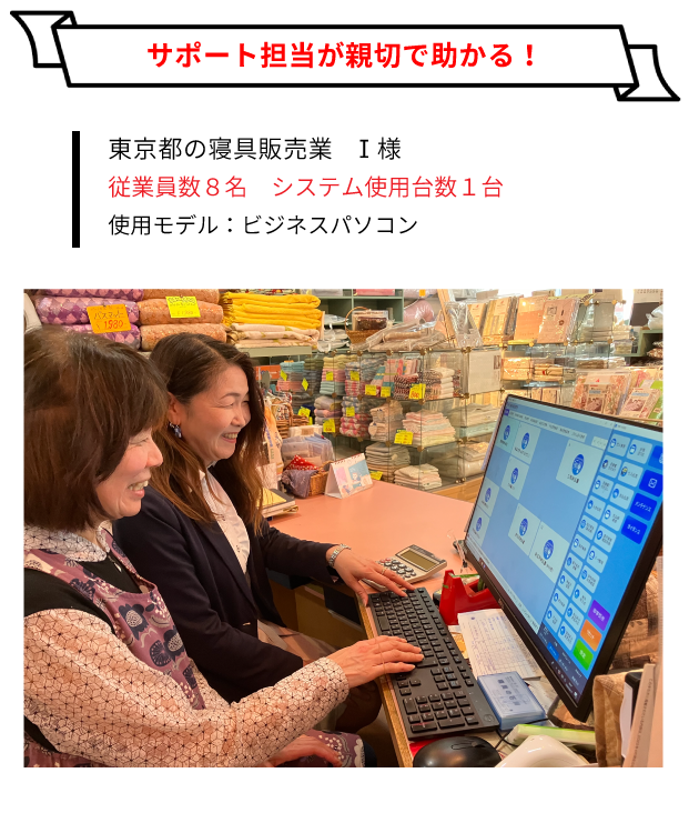担当者が定期的に訪問し、システムの点検も兼ねて問題なく使えているか等、気にかけてくれます。IT導入補助金のサポートも優しく対応してくれるので安心です。