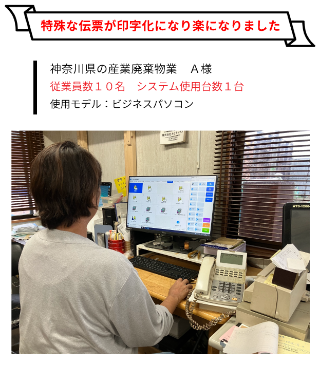 私たちは産業廃棄物を取り扱う仕事ですので、 3種類のマニフェスト伝票を作成していました。 日々、手書きで作成していたので分厚い複写伝票を 何冊も作成するのは大変で肩凝りもひどかったです。