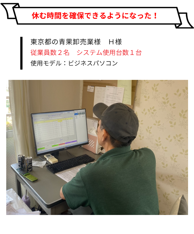 営業の方が定期的に訪問してくれるので、日常的にコミュニケーションが取れて安心です。他の青果業の事例も紹介してもらえるため、 自分たちの業務改善にもつながっています。困った時には電話一本でリモート対応していただけますし、機器本体のサポートも任せられるので余計な心配をする必要がありません。