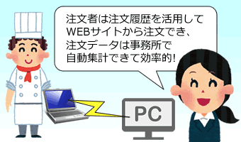注文者は前回の注文履歴を活用して、WEBサイトからいつでも注文する事が可能なので、注文者側で発生するFAX通信費なども節約でき、顧客満足にも繋がる。受注内容は直接、納品書に自動転記されるので入力ミスも減り、事務作業の効率も上がる!