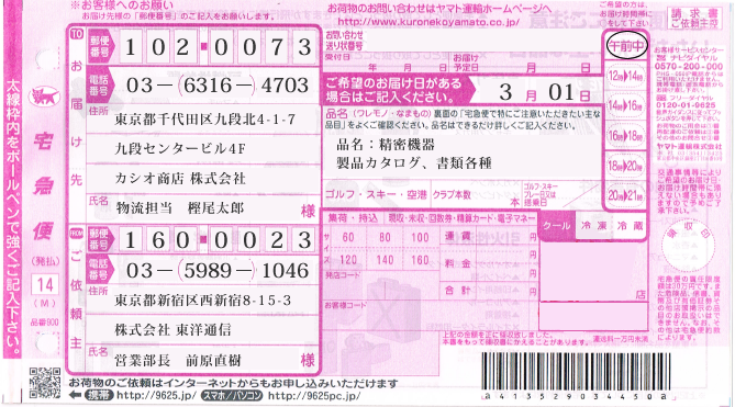 印刷例:ヤマト運輸
