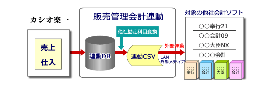 カシオ楽一は、主要会計ソフトとの仕訳連動も可能!