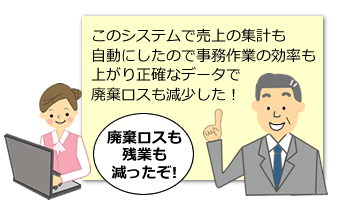 売上情報から集計表を日次、月次で自動作成。手計算より効率的ですぐに集計でき、計算も正確だから廃棄ロスも大幅にカットでき、経営効率もアップした。