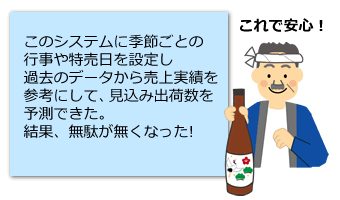 自動的に作成できる集計表に季節ごとのイベントや特売日などを登録し、過去の売上実績を元に生産する数を予測できるので、見込み出荷数も正確で、在庫過多という無駄も大幅に削減することが出来た!